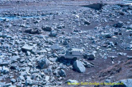 Below is where the landrover got to in the boulder field, the bridge is in the background.
